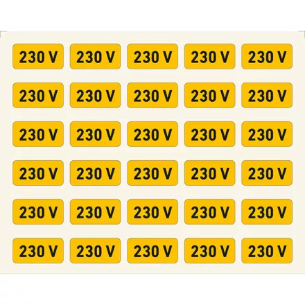Ideális elektromos szekrények, gépek, kapcsolók és minden olyan berendezés jelölésére, ahol a feszültség megjelölése kötelező.