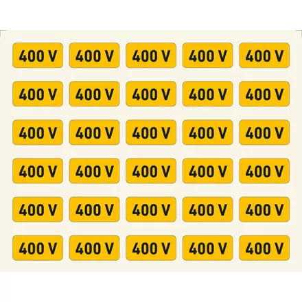 Ideális kapcsolószekrények, ipari gépek és minden olyan berendezés jelölésére, ahol a feszültség egyértelmű feltüntetése kötelező.