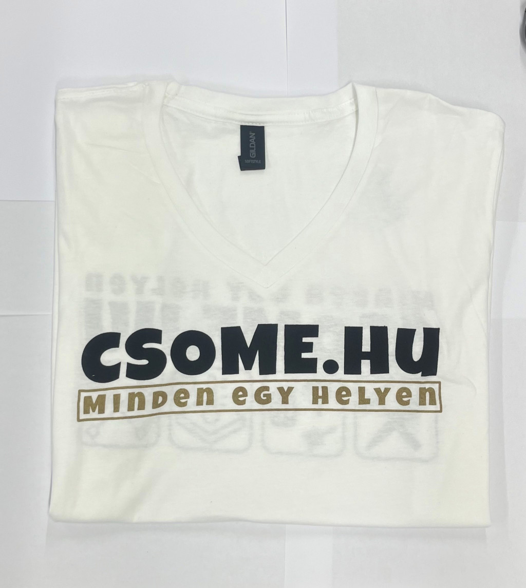 GILDAN SOFTSTYLE V NYAKÚ MUNKAPOLÓ FEHÉR L "CSÖME" FELIRATOS