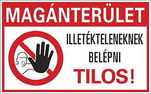 MAGÁNTERÜLET ILLETÉKTELENEKNEK BELÉPNI TILOS HORGANYZOTT LEMEZ 400X250 MM