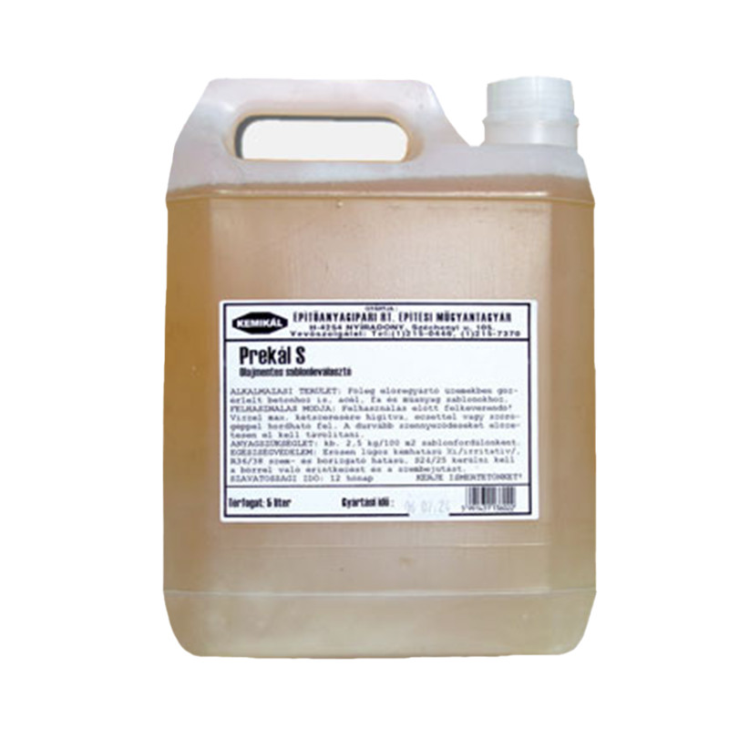 A Prekál® ZS olajmentes zsaluzatleválasztó és a Prekál® S olajmentes sablonleválasztó. Lúgos kémhatású vizes oldatok.