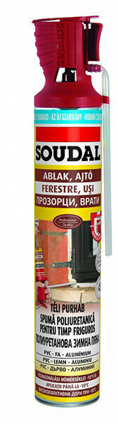 A Soudal téli szerelőhab egykomponensű, kiváló minőségű purhab, amely -10°C és +30°C között is megbízhatóan használható. Összetételének köszönhetően fagypont alatti hőmérsékleten is tökéletesen működik, így ideális választás téli szerelési és szigetelési munkákhoz.