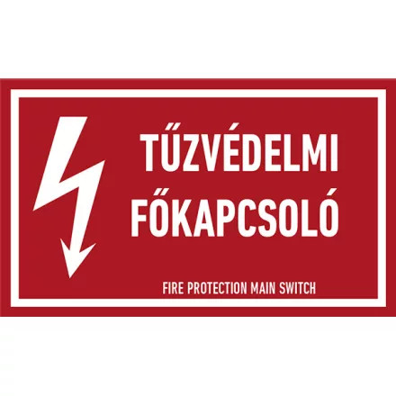 Munkavédelmi tábla Tűzvédelmi főkapcsoló! vinil öntapadó 160mm x 100mm