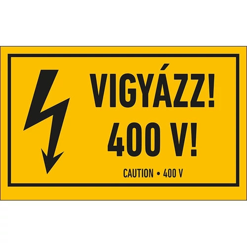 Vigyázz 400 V – Figyelmeztető tábla, 10×16 cm